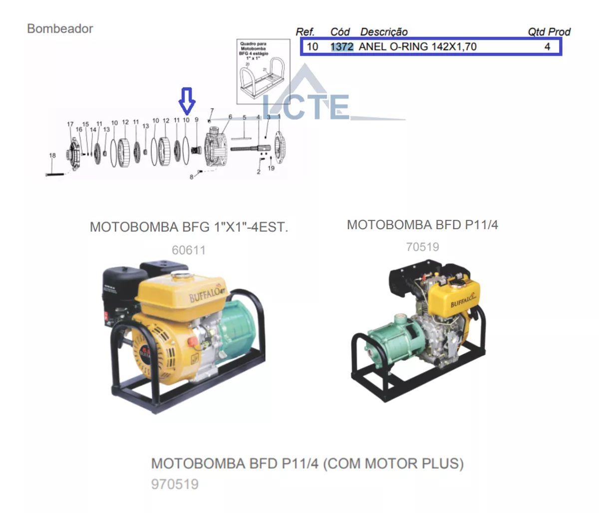 Anel O-ring 142x1,70 P/ Motobomba Bfd P11/4 Buffalo - 1372 quantidade