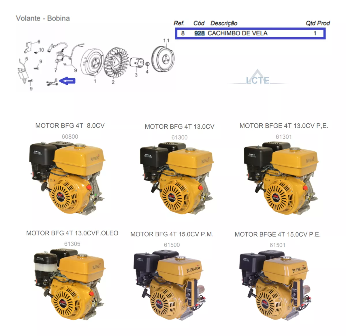Cachimbo Vela Para Motor 5.5/6.5/7.0/8/13.0/15.0hp- Código Buffalo928