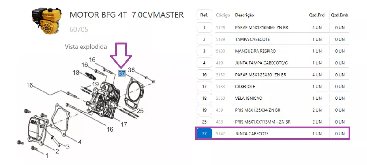 Junta Do Cabeçote Gerador Bfg3500 Buffalo Motor 7.0hp Master quantidade