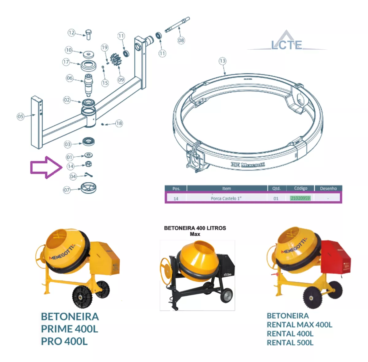Porca Castelo Sem Coroa Betoneira 400 L Menegotti quantidade
