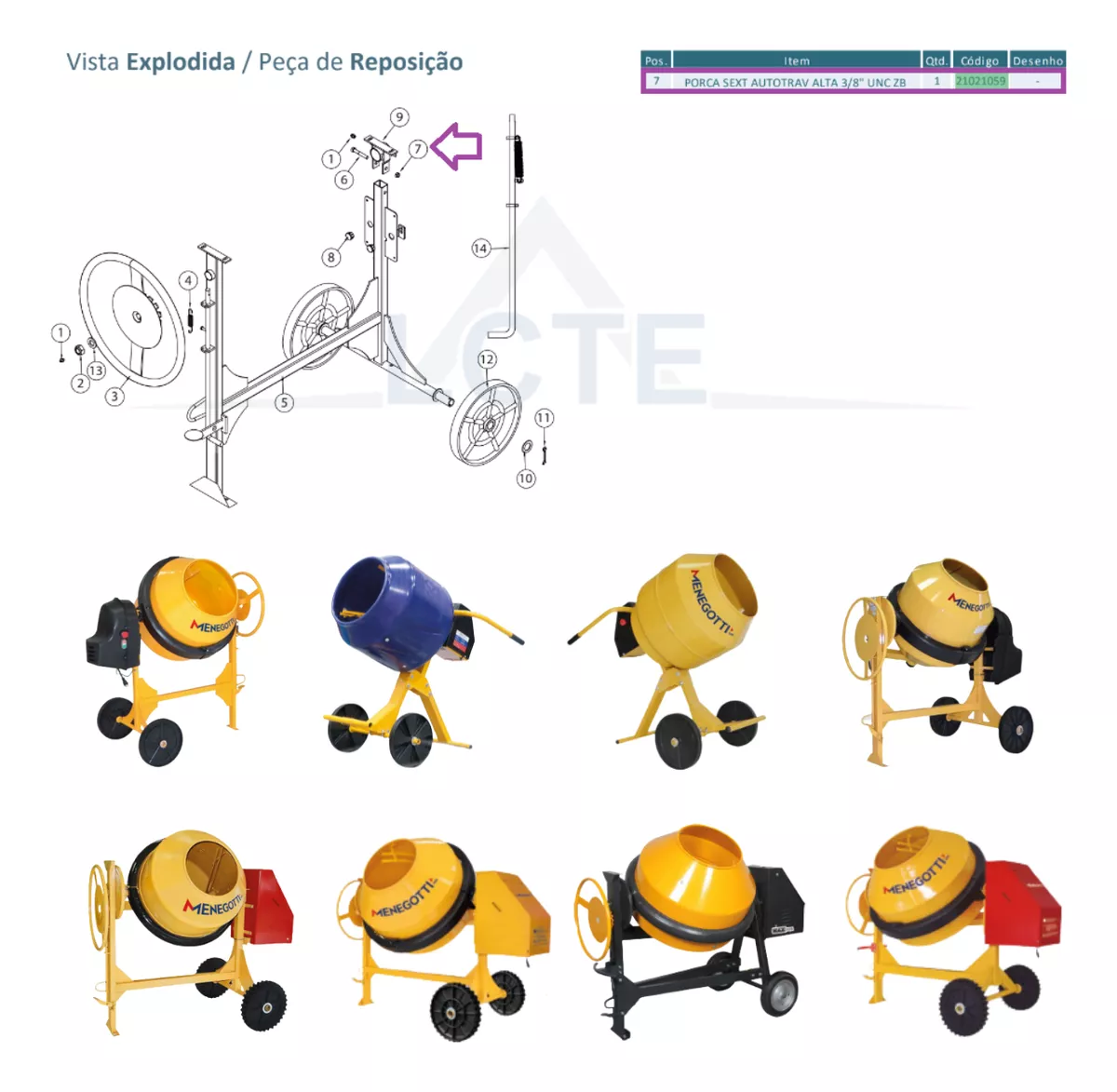 Porca Sexta Alta 3/8 Unc Zb Betoneira 250/ 400/ 500l Rental quantidade