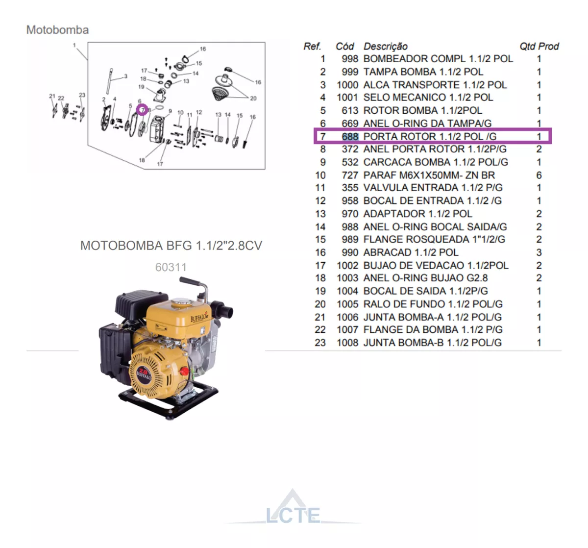 • Porta Rotor Da Motobomba 1.1/2″2.8cv Buffalo Original 688
