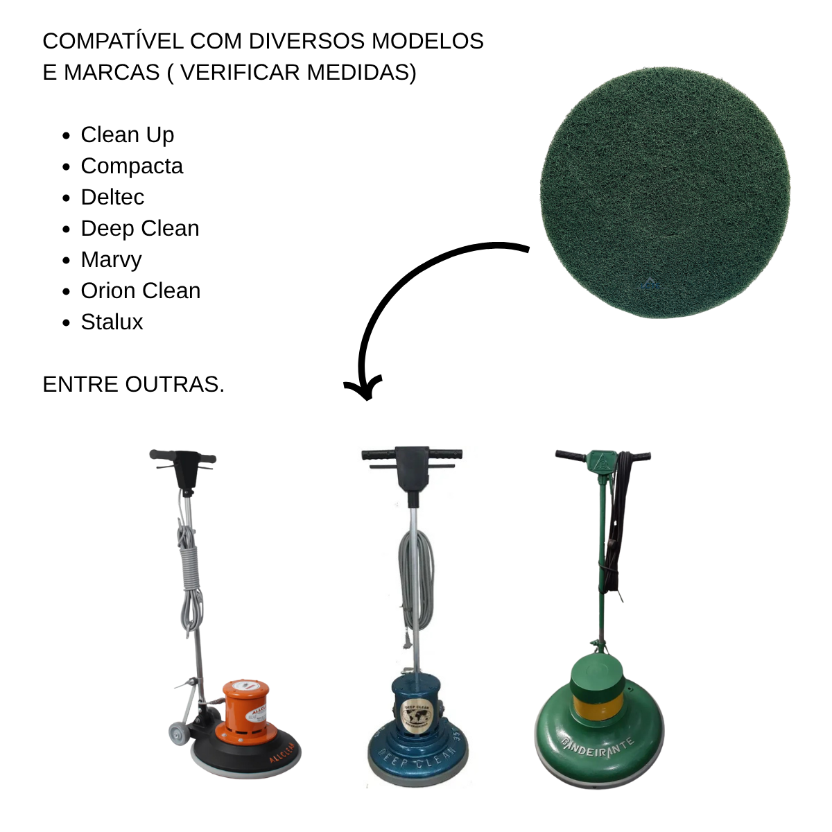 Utilizado com enceradeiras industriais de baixa rotação, com suporte de velcro 410mm e flange padrão 65mm. Recomendado para pisos frios como cerâmica, porcelanato, granito, mármore e superfícies similares em ambientes comerciais, industriais e residenciais.