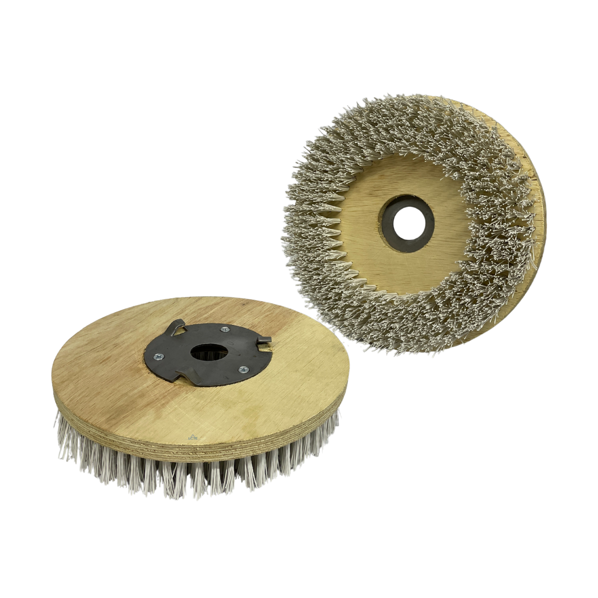 Suporte de nylon com diâmetro de 300mm, ideal para uso em enceradeiras industriais compactas. Compatível com modelos das marcas Cleaner, Orion Clean, AllClean, Brudden, Deep Clean, Certec e outras com flange de 38mm. Fabricado em madeira tratada, com Cerdas em Nylon e flange metálica central, É indicado em serviços de lavagem, polimento, remoção de cera e manutenção de pisos diversos.