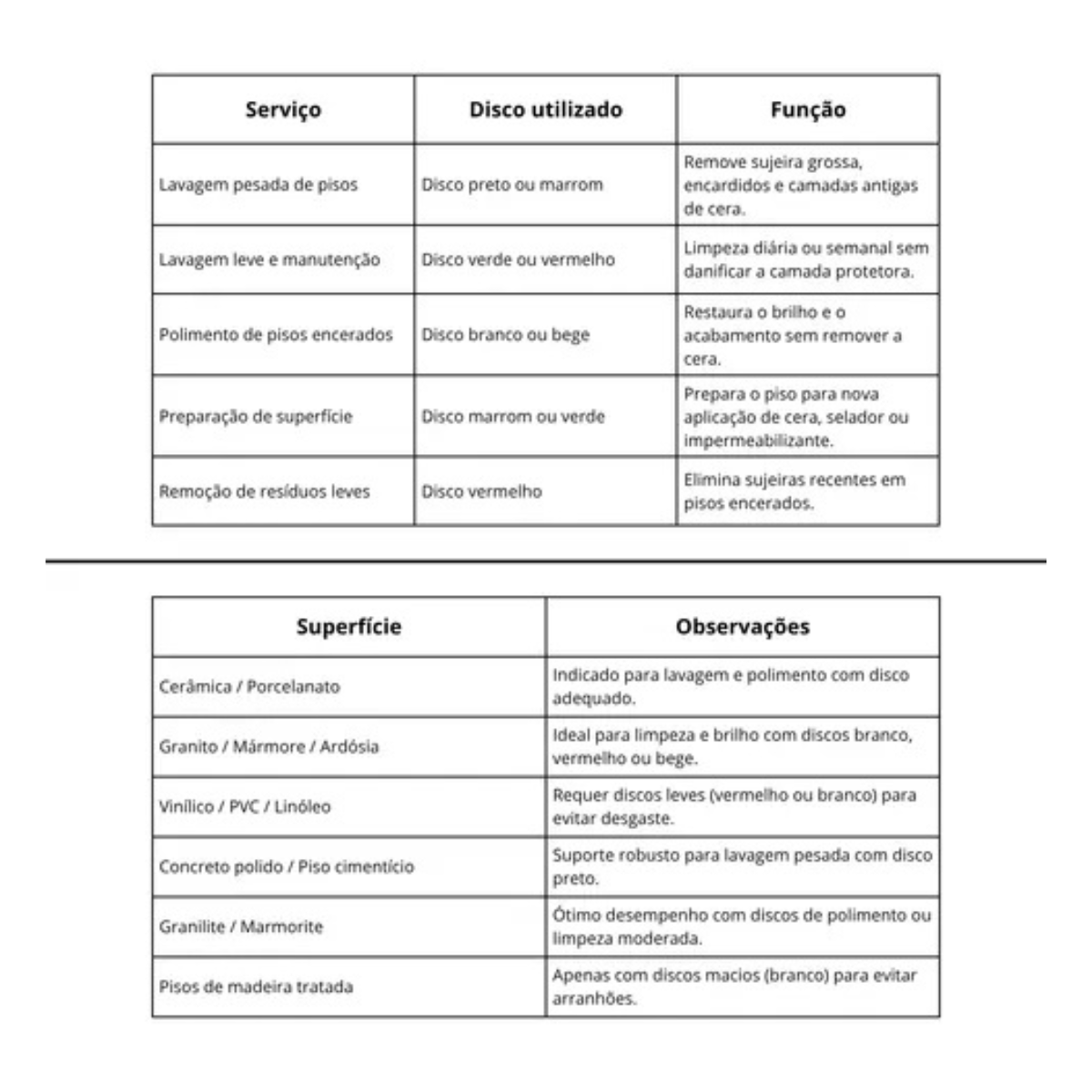 – Aplicação: discos para lavagem, polimento e remoção de cera